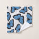Nahtloses Muster mit blauen Morpho-Schmetterlingen auf hydrangea Blume linework Hintergrund.