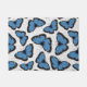 Nahtloses Muster mit blauen Morpho-Schmetterlingen auf hydrangea Blume linework Hintergrund.