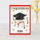 Abschluss-Design für ihn oder sie ist mit einer schwarzen Mortar-Kappe, Band gebunden Diploma, goldenen Sternen und Streamer mit dem Datum. Inside card hat einen Vers, kann aber als Einladung oder Grußkarte angepasst werden.