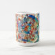 L'image est une mosaïque colorée avec un motif complexe de formes et de lignes tourbillonnantes. Le design comprend une variété de couleurs comme le bleu, le vert, le jaune, l'orange et le rouge, créant un effet visuel dynamique et dynamique. Les pièces en mosaïque sont disposées de manière à former un motif fluide, presque fleuri, aux éléments circulaires et en spirale. L'oeuvre est visuellement captivante en raison de sa complexité et de l'harmonieux mélange des couleurs.