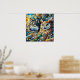 Ai Art stellte einen Wolf und eine Eule in einem Fliesenmosaik-Stil dar. Blaue Augen Wolf und ernsthaftes Eule Poster. Ideal für jeden, der wild Liebe.