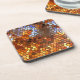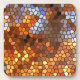 Dieses Set dekorativer Untersetzer weist ein geometrisches abstraktes Mosaikmuster aus fünfeckigen Mosaikfliesen in brillanten Herbstfarben auf: Rot, Orange, Braun, Gelb, Gold, Blau, Grau, Schwarz und Weiß.