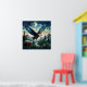 Ai-Kunst mit einem braunen Bären und Adler, der in den Bergen fliegt und nachts im Mosaikstil Vollmond hat.