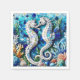 Seepferd Hochzeit Servietten. Schöne Mosaik gebrochene Fliesen, Buntglasstrände Design in Gold und Blues. Zwei Meerpferde, die sich in einem Meer von lebhaften Farben, umgeben von Korallen und kristallklarem blauem Wasser, gegenseitig anschauen.