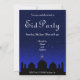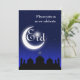 Eine Silhouette einer Moschee auf einem nächtlichen Himmelshintergrund mit Mond und Sternen.