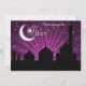 Islamische Illustration mit Silhouetten des Mondes, Sternen und einer Moschee am lila Nachthimmel.