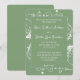 Invités Invitations à votre prochain mariage avec un Faire-part de mariage Moss Green Flourish. Le design de l'invitation présente une floraison feutrée élégante avec un arrière - plan coloré assorti. Personnalisez avec les noms du marié et de la mariée ainsi que la date et l'emplacement du mariage. Papier à lettres mariage supplémentaire disponible avec cette conception aussi.