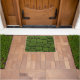 Visualisieren Sie ein ruhiges Outdoor-Ambiente mit einer Schicht von moosgrünen Fahnensteinen, die sich in Größe und Form unterscheiden. Jeder Stein zeigt einzigartige Texturen und schafft einen harmonischen und natürlichen Weg, der zum Entdecken einlädt.