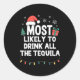 Most Likely To Drink All The Tequila Christmas Fun Runder Aufkleber