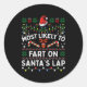 Most Likely To Fart On Santa's Lap Funny Christmas Runder Aufkleber