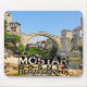 Souvenirs zeigen eine ikonische Sicht auf Mostar, Bosnien-Herzegowina.