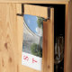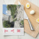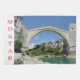 Une belle vue sur le Vieux Pont Mostar en Bosnie-Herzégovine avec la Vieille Ville en arrière - plan imprimé sur une serviette de thé souvenir.