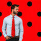 POIS ! L'un des motifs de vêtements classiques qui a l'air très bien sur les cravates. Cette cravate à points polka comporte de petits points noirs en rouge.