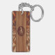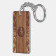 Un magnifique Design avec un bandeau central en bois clair entouré d'un motif triangulaire arrondi en bois sculpté et artisanal aux tons boisés contrastés. Au centre, votre monogramme est affiché en cercle avec de magnifiques lettres entrelacées comme gravées dans le bois. Accessoire très raffiné, ce porte - clé ajoutera une touche décorative chic à votre style.