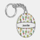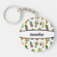 Un porte-clés avec un motif mignon et amusant. Illustrations de différents cactus, assis dans des pots de fleurs avec des visages souriants et heureux de dessin animé.