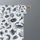 Belle serviette de bain bleu & blanc avec étoiles de mer bleu, crabe, hippocampes et coquillages.