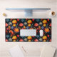 Ce tapis de bureau est muni d'un motif à fleurs.