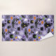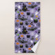 Drôle motif d'Halloween avec chauves-souris, chats, araignées, fantômes, citrouilles, maison hantée, lollipops.