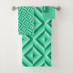 Décorez votre salle de bain avec cet ensemble de serviettes de bain à motif diamant à trois tons vert Monogram. Il présente un motif géométrique de diamants en trois nuances de vert avec une initiale en vert clair sur un carré vert foncé sur le gant de toilette. Personnalisez-le avec votre initiale. Une excellente idée de cadeau de pendaison de crémaillère pour les nouveaux propriétaires.