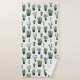 Serviettes de bain aux saveurs occidentales rustiques. Conçu avec un tas de cactus verts mignons dans un motif extensible. Plus précisément, des cactus épineux de couleur verte, de toutes sortes de formes et de tailles, chacun assis dans son propre pot de fleurs bleu foncé. Des petits triangles décoratifs entre eux. Illustration de fantaisie.
