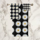 Ensemble de serviettes de bain qui présente une photo d'une jolie fleur de marguerite blanche avec centre jaune sur un arrière - plan noir et imprimé dans un motif carrelé. Un joli design floral ! Commandez les serviettes séparément ou en set.
