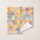 Cet élégant ensemble de serviettes de bain présente des formes géométriques classiques motifs dans une belle palette de couleurs de terre d'automne gris, blush, jaune et vert sauge.