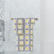 Élégant design de serviettes de bain vintage avec un motif sans couture aux formes géométriques en jaune, blanc, gris clair et gris foncé.