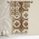 Apportez une touche d'élégance globale à votre espace avec ce motif géométrique époustouflant dans les tons bleu turquoise, orange doré et blanc, inspiré par les carreaux traditionnels marocains et méditerranéens. Le design complexe des serviettes de bain présente des formes symétriques et des détails ornés d'une torche égyptienne, évoquant la riche histoire et l'artisanat artistique de ces régions. Qu'il s'agisse d'un décor maison, de matériel de fête ou de cadeaux personnalisés, ce motif ajoute un charme sophistiqué et mondain. Le design fait partie d'une collection exclusive, parfaite pour tous ceux qui cherchent à insuffler leur maison ou des événements d'une beauté intemporelle. Recherchez ID1077 pour voir d'autres produits dans cet ensemble de conceptions unique. Note : conception adaptée à partir du contenu génératif.
