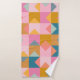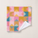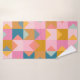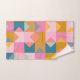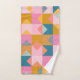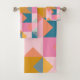 Un patchwork géométrique coloré et amusant façonne un motif moderne inspiré de la courtepointe dans une palette de couleurs vives, turquoise, rose et jaune.
