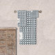 Motif moderne et géométrique sans couture de petits carrés alternant ardoise bleue et blanche avec des points alternatifs à l'intérieur. Monogramme modèle à l'intérieur d'un carré blanc bordé.