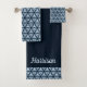 Un motif de tourbillons profonds et complexes en bleu nuit indigo recouvre la serviette et le linge de toilette dans cet élégant ensemble de serviettes de bain. La serviette 30x60" est un bleu indigo riche, découpé dans ce motif classique, avec de l'espace pour votre texte personnalisé.