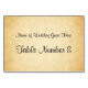 Une table mariage place la conception de la carte avec un design arrière - plan imprimé dans le style de vieux papier vintage, conçu pour ressembler à un motif faux parchemin. L'arrière - plan est un imprimé motif dans des tons beige jaunâtre / tan. Il y a du texte noir élégant qui peut être personnalisé. Carte de siège et de numéro de table pour les clients mariages.