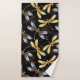 Motif sans couture avec or, bijoux, libellules brillantes avec ailes détaillées et pétillantes sur arrière - plan noir. libellule d'or.