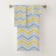 Yellow, gray, light blue, white zigzag stripes.