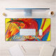 Ce tapis de bureau élégant est une excellente motivation et une affirmation positive d'encouragement. Parfait en tant que tapis de bureau, sous-main de grande taille, et idéal pour l'écriture, la dactylographie ou les travaux manuels. Ce beau tapis de bureau motivant et inspirant illuminera n'importe quel espace de travail à domicile ou zone de travail. Il est également doté d'un dessous antidérapant pour réduire le glissement ou le déplacement sur la plupart des surfaces. Le design présente une œuvre d'art abstraite moderne colorée unique, peinte avec des couleurs tropicales joyeuses, jaune, rouge, bleu et orange, sur un fond jaune vif et heureux. Ce design époustouflant créé avec un flux de couleurs artistique, imprimé sur un tapis de bureau en néoprène épais de 3 mm. Le design présente une citation motivationnelle et inspirante personnalisable « Levez-vous et brillez ! » qui peut être modifiée et entièrement personnalisée en fonction de vos besoins. Une véritable affirmation quotidienne de pensée positive et d'élévation. Ce tapis de bureau unique est une excellente idée de cadeau d'art de citation inspirante de typographie, améliorant n'importe quel espace de travail à domicile et zone de travail avec son ambiance d'optimisme inspirante et encourageante. Ce tapis de bureau de pensée positive et de bonnes vibrations fait partie de la collection « Tapis de bureau abstraits de marbre motivationnels », conçu par Abstract a Dream Studios et Shop. A