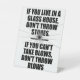Fügen Sie dem Arbeitsbereich mit diesem fett motivierend Schreibtischzeichen eine scharfe Erinnerung hinzu. Mit den Redewendungen "Wenn du in einem Glashaus wohnst, wirf keine Steine" und "Wenn du keine Schläge nehmen kannst, wirf keine Schläge", ist dieses Design mit einem Risse-Glas-Effekt gepaart, um einen maximalen Aufprall zu erzielen. Es ist perfekt für Büros, Klassenzimmer oder Zuhause-Desks geeignet und dient sowohl als Dekor als auch als alltägliche Weisheit. Passen Sie Schriftart, Farben oder Text an, um Ihre eigene, einzigartige Version zu erstellen. Macht ein nachdenkliches Geschenk für Mitarbeiter, Führer oder alle, die ein unsinniges Zitat schätzen.