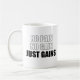 Eine Tasse mit dem motivierenden Slogan "No Pain No Gain Just Gains" in einfacher, fett formatierter Texttypografie.