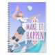Dieses Notebook-Cover-Design verfügt über einen illustrierten, Cartoon-ähnlichen Volleyballspieler in der Mitte der Aktion, darstellend ein Sprungdienst. Die dynamische Komposition hebt Bewegung und Energie hervor, mit wirbelnden Bewegungslinien und einem Gradientenhintergrund, der von weich blau zu lila wird. Die Pose von Volleyball und Athletin legt den Schwerpunkt auf Sport, Gesundheit und Hingabe. Ein motivierend Satz, "MAKE IT HAPPEN", wird deutlich in fett lila Schrift dargestellt, umgeben von Dekorelementen in Rot und Weiß. Zu den Kernthemen zählen Volleyball, Arbeit, Übungen, Wettkämpfe, Übung, Liebe für den Sport, Selbstvertrauen und die Entschlossenheit, über Grenzen zu gehen. Dieses lebendige Cover eignet sich perfekt für Sportbegeisterte oder für alle, die sich durch das Streben nach Exzellenz in Spielen und Fitness inspiriert haben. Made with Canva elements