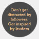 "Lassen Sie sich von den Anhängern nicht ablenken. Lassen Sie sich von den führenden Persönlichkeiten inspiriert." Einfaches und anregendes Angebot mit einfachem Text auf klassischem Rundaufkleber. Es ist vollständig anpassbar, Sie können es nach Ihrer Wahl ändern