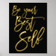 Motivierend Zitat Sei Dein bester Selbstskript Schwarzer Luxus Real Foil in deiner Wahl von Gold oder Silber für das positive Zitat Du Got Dies auf einem klassischen schwarzen Hintergrund, den du auf Wunsch in eine andere Farbe ändern kannst.
