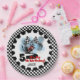 Kinder, denen das Liebelaufen und -motorräder Liebe dieser laufende Thema-Papierplattenentwurf des 5. Geburtstagsmotorrades sind, der ein rotes Motorrad mit Fahrer kennzeichnet, checkered Flaggen, Text, der liest, ist es mein 5. Geburtstag und eine Grenze mit einem schwarzen dekorativen Ring und Schwarzweiss-Karos. Vor der Einrichtung Sie können diese leicht personifizieren, die PapierTeller des fünften Geburtstages des Themas mit einem Namen laufen.