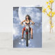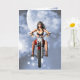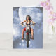 Ein schönes Mädchen, das ein Fahrrad durch die Sterne am Himmel fährt. Eine ganz andere Geburtstagskarte für den Mann, der gerne reitet.