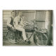 Diese Karte kennzeichnet eine Vintage Dreißigerjahre Fotografie von zwei Männern, von Jungen und von Teddybären, der auf einem Motorrad aufwirft. Löschen Sie nach innen.
