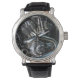 Uhr, Vintage Männeruhr mit schwarzem Lederarmband