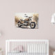 Poster eines klassischen Motorrads. Das erdfarbene Grün im Hintergrund verleiht dem Ganzen ein warmes, rustikales Ambiente.