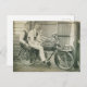 Auf dieser Postkarte befindet sich ein Vintages Foto von zwei Männern aus den 30er Jahren, ein Junge und ein Teddybär, der auf einem Motorrad steht.