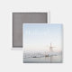 Aimant d'un moulin à vent dans la neige à côté d'un canal pendant un lever de soleil brumeux en hiver dans la Pays-Bas avec le texte : 'Holland'.