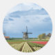 Montage photo rond d'un paysage avec un moulin à vent et tulipes jaunes et rouges sous un ciel nuageux dans la campagne hollandaise sur un beau printemps dans la région de Bulb, la Pays-Bas.