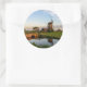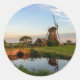 Collier photo souvenir rond d'un moulin à vent à côté d'un petit fossé avec un pont au bord d'une grande prairie dans la campagne hollandaise au coucher du soleil à Aarlanderveen, la Pays-Bas.