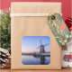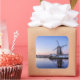 Sticker avec un lever de soleil sur les moulins à vent de Kinderdijk dans le Pays-Bas en hiver avec de la neige et de la glace sur l'eau.